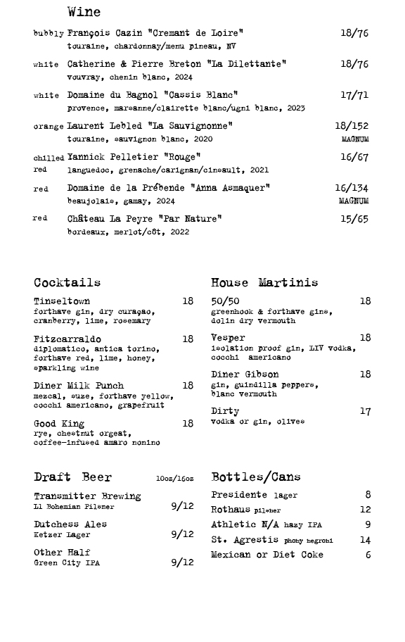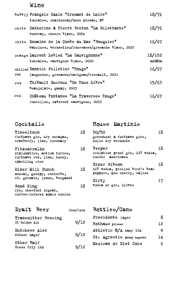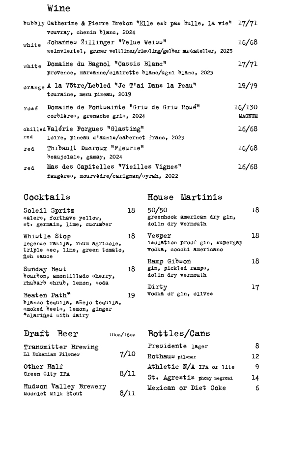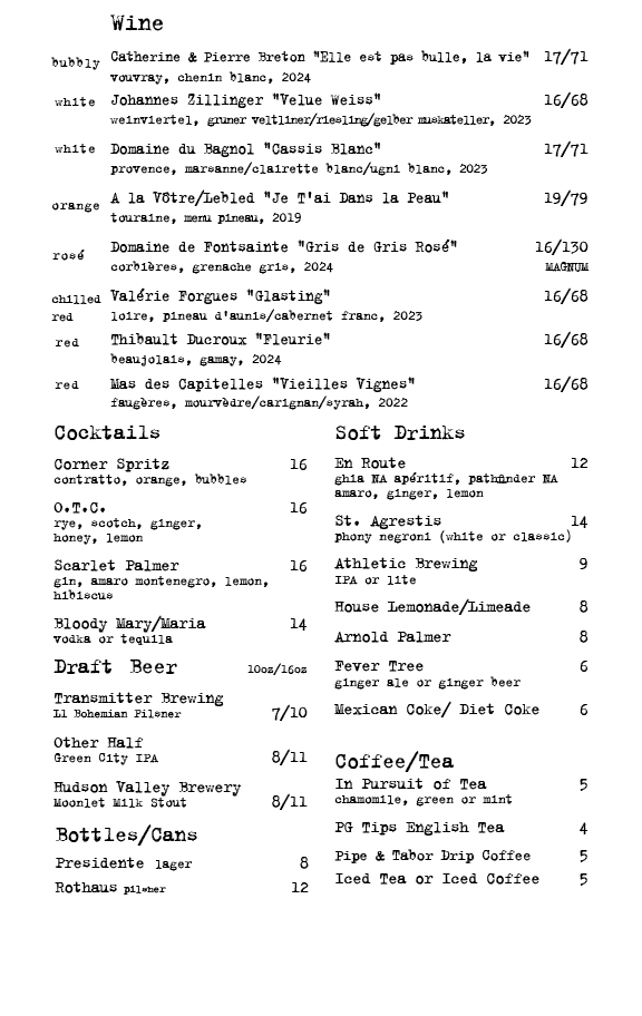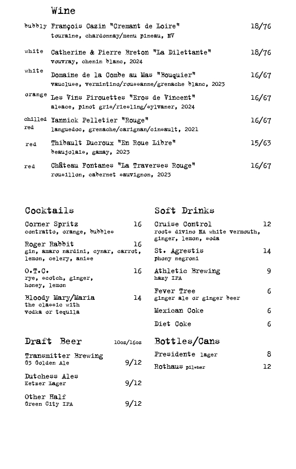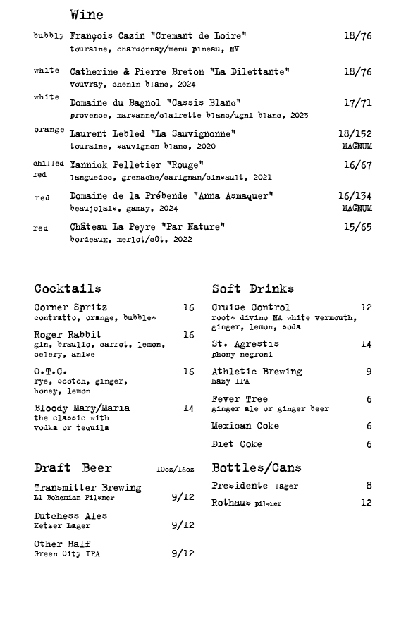 We have a natural wine list centered in France. Come check it out!